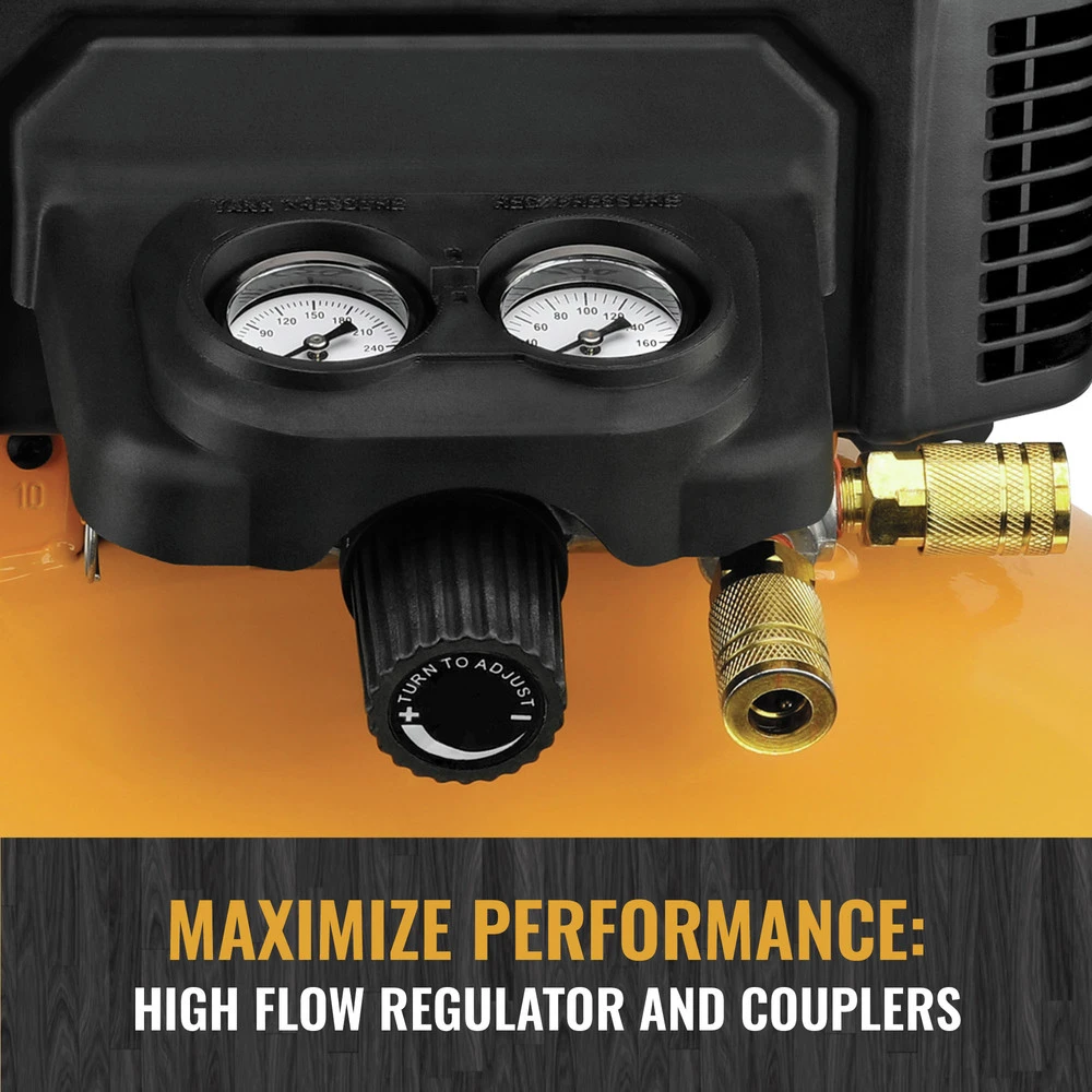 Keeps Your Tools Running Longer: 150 PSI 6 Gallon tank (22.7 L) delivers 2.6 SCFM at 90 PSI to enable long tool runtime and quick recovery