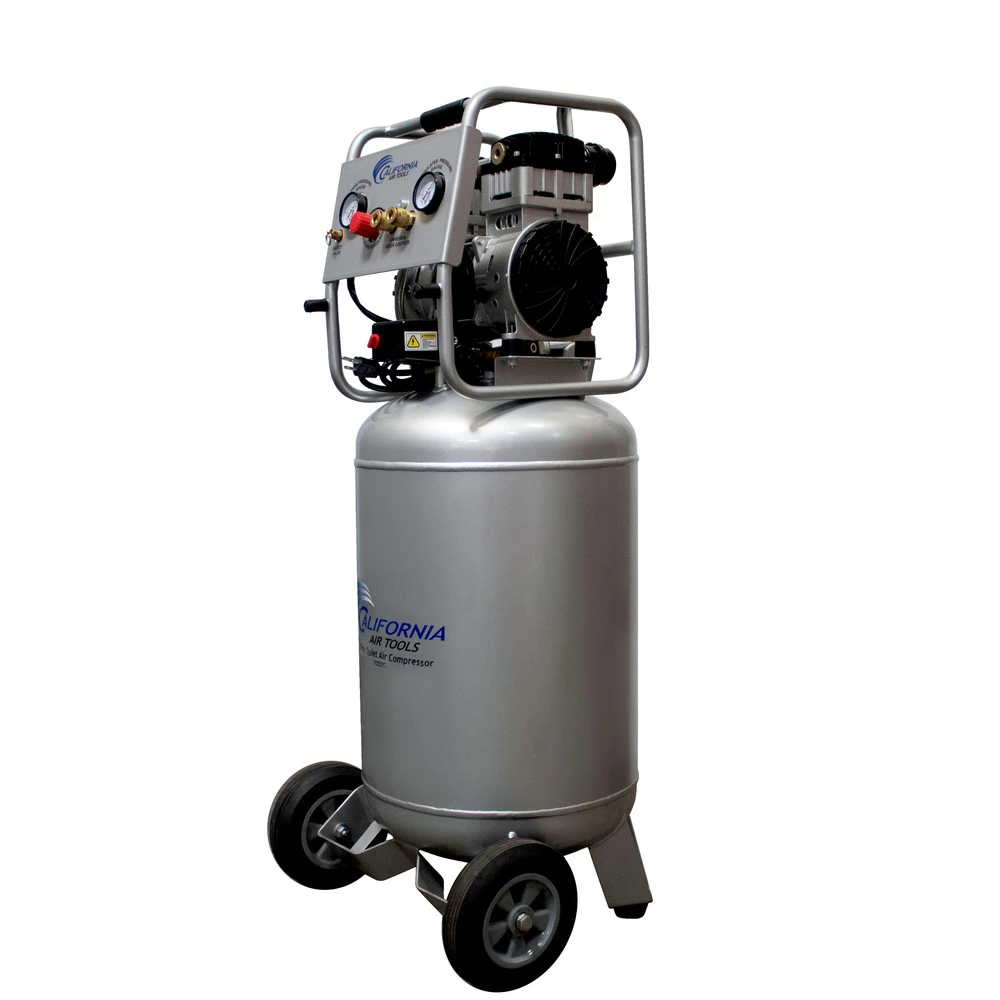 The California Air Tools 20020 Ultra Quiet and Oil-Free Air Compressor is designed to be one of the quietest 2 HP air compressors in the industry having only 70 decibels of sound. The Powerful 2 HP motor operates at only 1680 RPM creating less noise and less wear. The SP Series of Ultra Quiet Air Compressor Motors have been designed to increase duty cycle and allow for longer continuous run times. The Oil-Free Dual Piston Pump System is engineered for high performance and durability. The CAT-20020 Air Compressor has an Oil-Free Dual Piston pump designed to have a life cycle before wear of 3000 Plus hours compared to other comparable air compressors with life cycles of 500 hours or less. The Oil-Free pump allows for use in a variety of temperatures (cold starts) and uneven terrains (no oil in the pump). The Easy Start Valve feature allows for a easier start up using less starting amps. The Easy Start Valve releases a small amount of air from the pump at start up to produce a no-load condition allowing the motor to spin freely. This no-load start up requires less amps for a easier start up in cold temperatures. The large 20 Gallon Steel Air Tank is designed to store more air for higher demand air tools such as spray guns and sanders. Prefect for the shop or garage. The 2 (no flat) wheels makes moving this air compressor very easy. Designed for the person looking for Power, Air Flow, Less Service and Maintenance with at Least 30% Less Noise!
