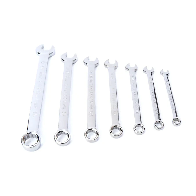 Includes (7) Long Panel Gunmetal Chrome Combination Wrenches SAE (3/8-in., 7/16-in., 1/2-in., 9/16-in., 5/8-in., 11/16-in., 3/4-in.)