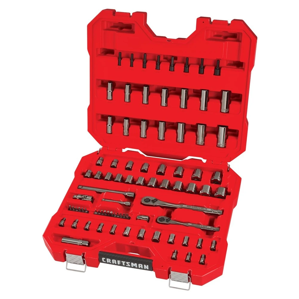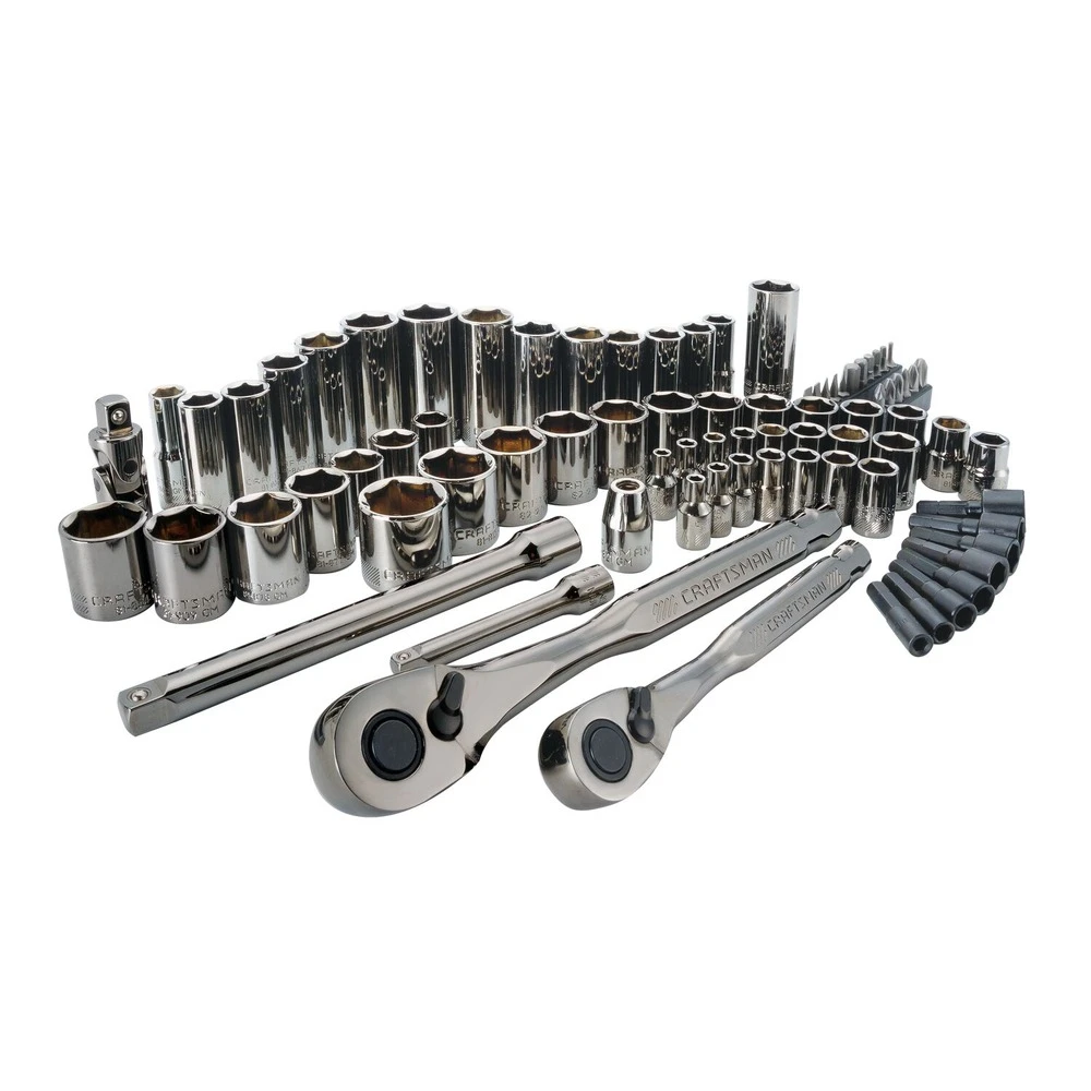 The 81-Piece Gunmetal Chrome Mechanic Tool Set is made for the auto-enthusiast, semi-pro, or DIYer. This set comes with the new industry-leading, CRAFTSMAN 120-tooth ratchet that provides maximum accessibility in tight spots. With its slim head and 3-degree arc swing, you can get into narrow spaces with ease and quickly tighten or loosen a fastener. Take on your next project with the 81-Piece Gunmetal Chrome Set.