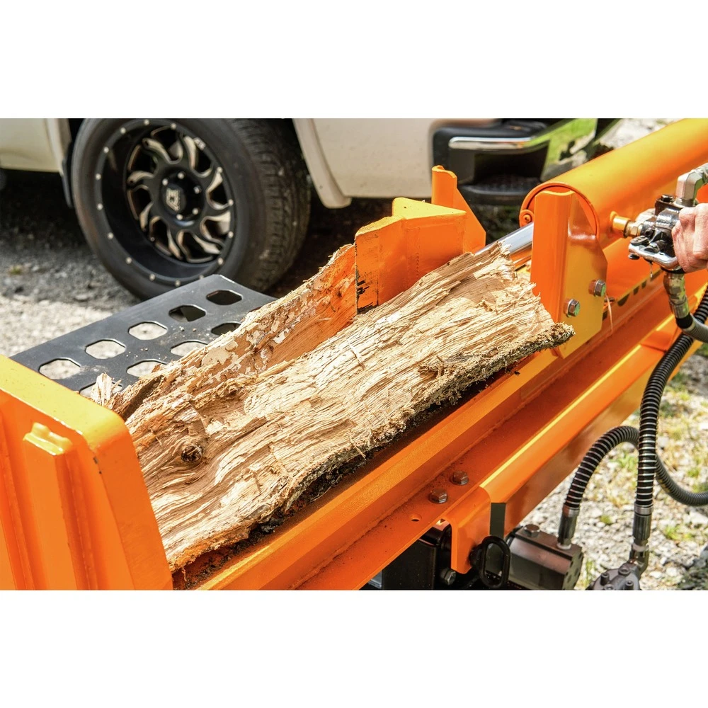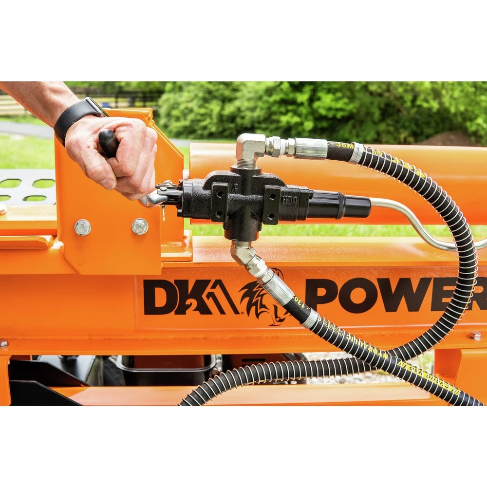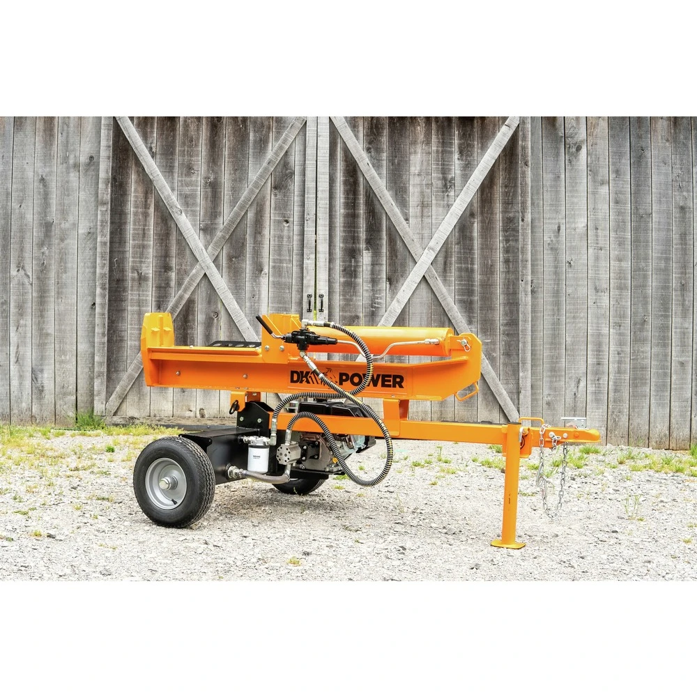 Introducing the 32-ton horizontal/vertical hydraulic log splitter. The DK2 POWER OPS232 is driven by a powerful KOHLER SH265 6.5 HP 196cc engine. This machine is capable of splitting up to 25.5 in. in length and 21.6 in. in diameter with uncompromising force at a cycle speed of 13 seconds, all while using the full potential of its 8.5-in. heat-treated steel wedge. The OPS232 sits on a 37-in. wheelbase equipped with 16-in. O.D. 4.8-8 tires and includes a tow bar for easy job site moving
