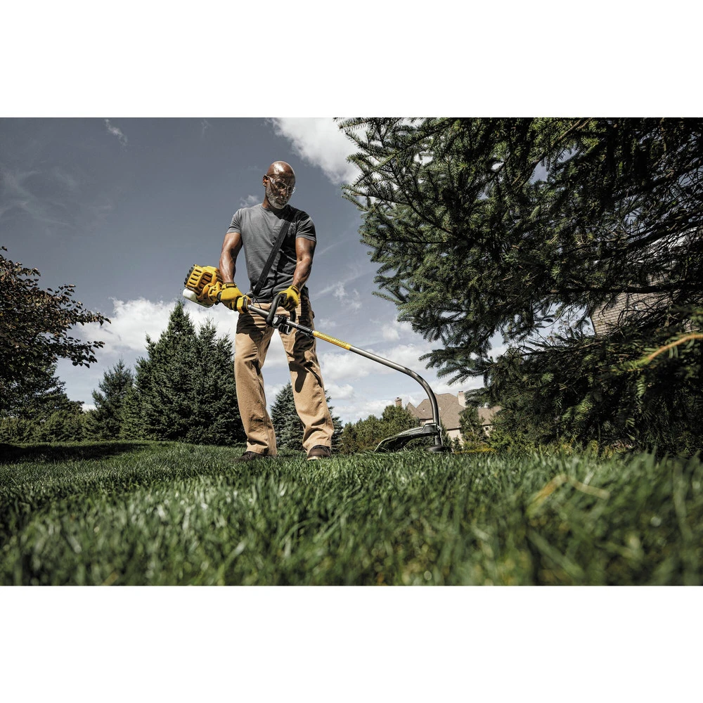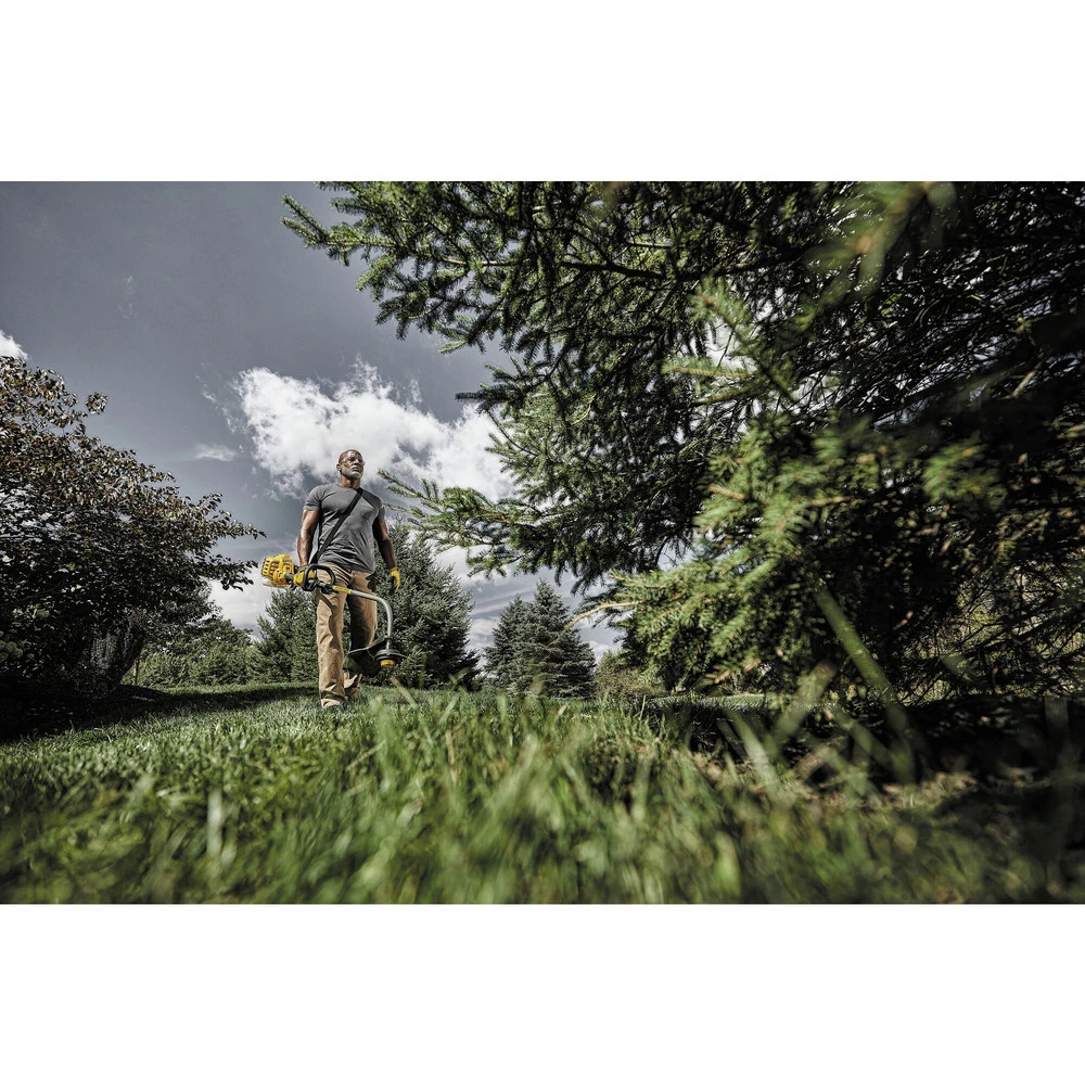 The DeWALT 41AD27CC939/539 is a string trimmer by DeWALT. This string trimmer integrates a full-crank engine that provides better balance and control. Additionally, this 2-Cycle trimmer incorporates a gear drive design that powers up through tough overgrowth and withstands heavy-duty usage. The 41AD27CC939/539 features a 17 in. Cutting swath that allows wide range trimming. Furthermore, it has an easy bump feed head that features a one quick load spool. In addition, this trimmer has an ergonomic over-mold handle design that provides a lightweight construct and maximum control. On top of that, this trimmer comes with a 3 Year limited warranty for defects and malfunctions.