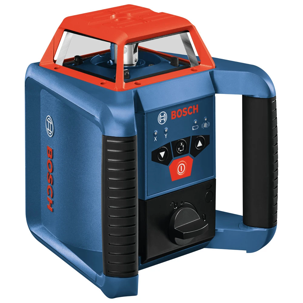The Bosch REVOLVE2000 Self-Leveling Horizontal Rotary Laser Kit delivers a comprehensive solution for precise outdoor and indoor leveling. Manual Dual Slope allows the user to adjust the slope angle on the laser on both the X- and Y-axes. The GRL2000-40HK-RT features a horizontal self-leveling laser, suitable for leveling, and aligning applications. This kit contains an all-in-one hard carrying case designed to hold all included accessories. The REVOLVE2000 rotary laser delivers +/- 1/16 in. accuracy at 100 ft., and working range of up to 2000 ft. with the included receiver. The laser’s electronic self-leveling system has a disturbance monitor, which indicates to the user if tool position changes, ensuring consistent leveling accuracy on the jobsite. The laser has a red metal cage for durability. Easy to use, the kit includes an all-in-one solution includes an LR20 laser receiver with mounting bracket, aluminum tripod, and sturdy grade rod.