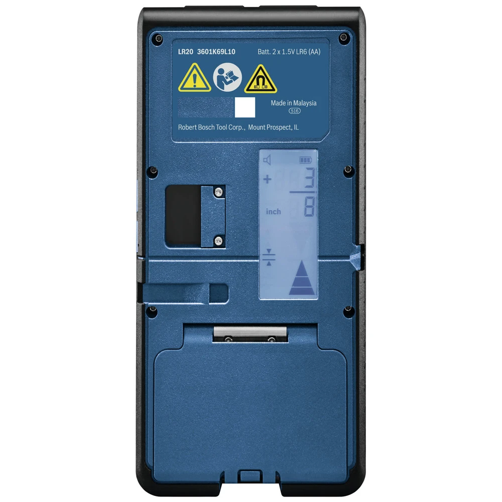 Laser receiver with mounting bracket – allows for easy-to-read LCD dual display and easy attachment to leveling rod