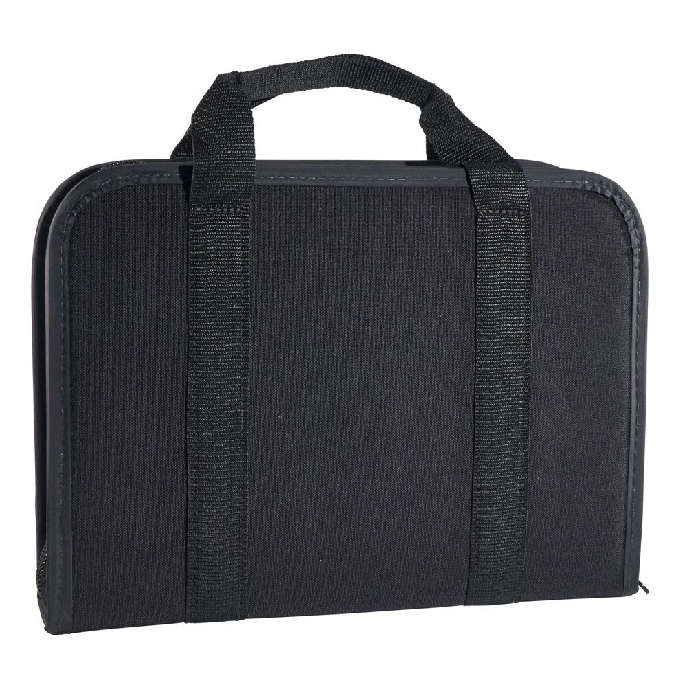 Highly durable, black nylon case features zipper closure, polypropylene handles and custom-fitted tool pockets