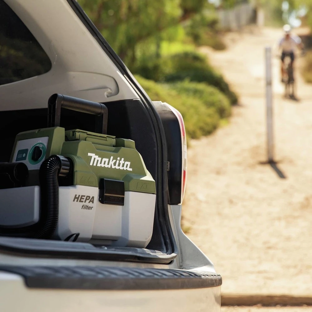Get outside with Outdoor Adventure, a new series of cordless products that operate within the LXT system. Outdoor Adventure Products feature advanced technology, delivering maximum performance and efficiency for the outdoors. Makita offers hundreds of products within the 18V LXT system so you can create your own adventure. Clean up dirt and liquids from your tent, car, canoe, and more with the Outdoor Adventure 18V LXT Brushless Wet/Dry Vacuum (ADCV11). The compact and cordless design with shoulder strap (sold separately) allows easy transport of the vacuum for efficient use. Get up to 60 minutes of continuous run-time and up to 57 CFM and 27 in. Water lift of suction on a single charge of one 18V LXT 5 Ah Battery. It’s part of Makita’s expanding 18V Lithium-Ion System, the world’s largest cordless tool system powered by 18V Lithium-Ion slide-style batteries. Makita 18V LXT Lithium-Ion Batteries have the fastest charge times in their categories, so they spend more time working and less time sitting on the charger. For improved tool performance and extended battery life, Makita created Star Protection Computer Controls. Star Protection is a communication technology that allows the Star Protection-equipped tool and battery to exchange data in real time and monitor conditions during use to protect against overloading, over-discharging, and overheating. For increased versatility, the tool can also be powered by Makita LXT Lithium-Ion Batteries with the star symbol on the battery indicating Star Protection inside.