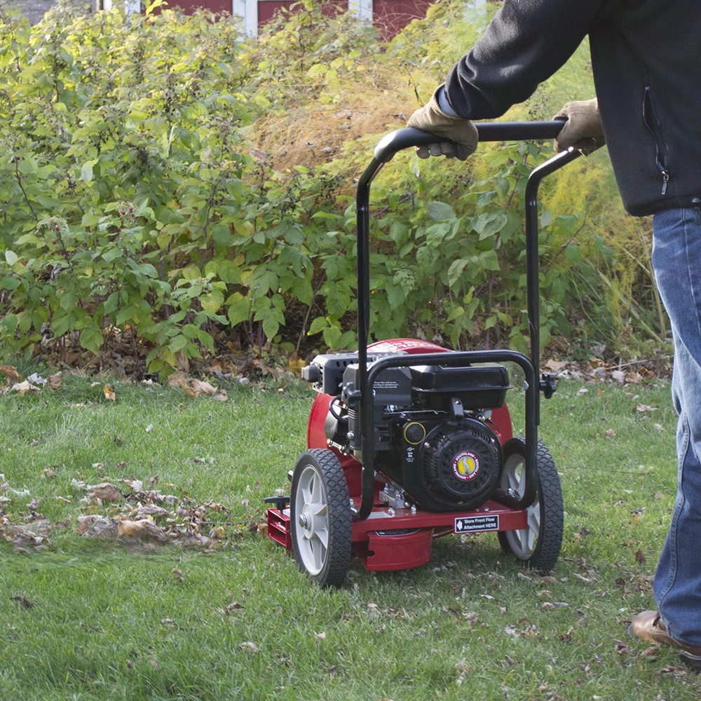 Do your back a favor and throw out that heavy backpack blower because Southland’s SWB163150E 163cc 4 Stroke Gas Powered Walk Behind Blower has now arrived. With a powerful engine, this blower will produce three to four times more power than backpack blowers so you clear out leaves and trash from large areas quickly without much exhaustion. The design of this blower includes two 12 in. rear wheels and a front swivel wheel that makes handling an absolute breeze. The manual recoil easy start fuel delivery system guarantees that the SWB163150E consistently starts without much work, and the ergonomic padded handles reduces the fatigue in your hands during prolonged use.