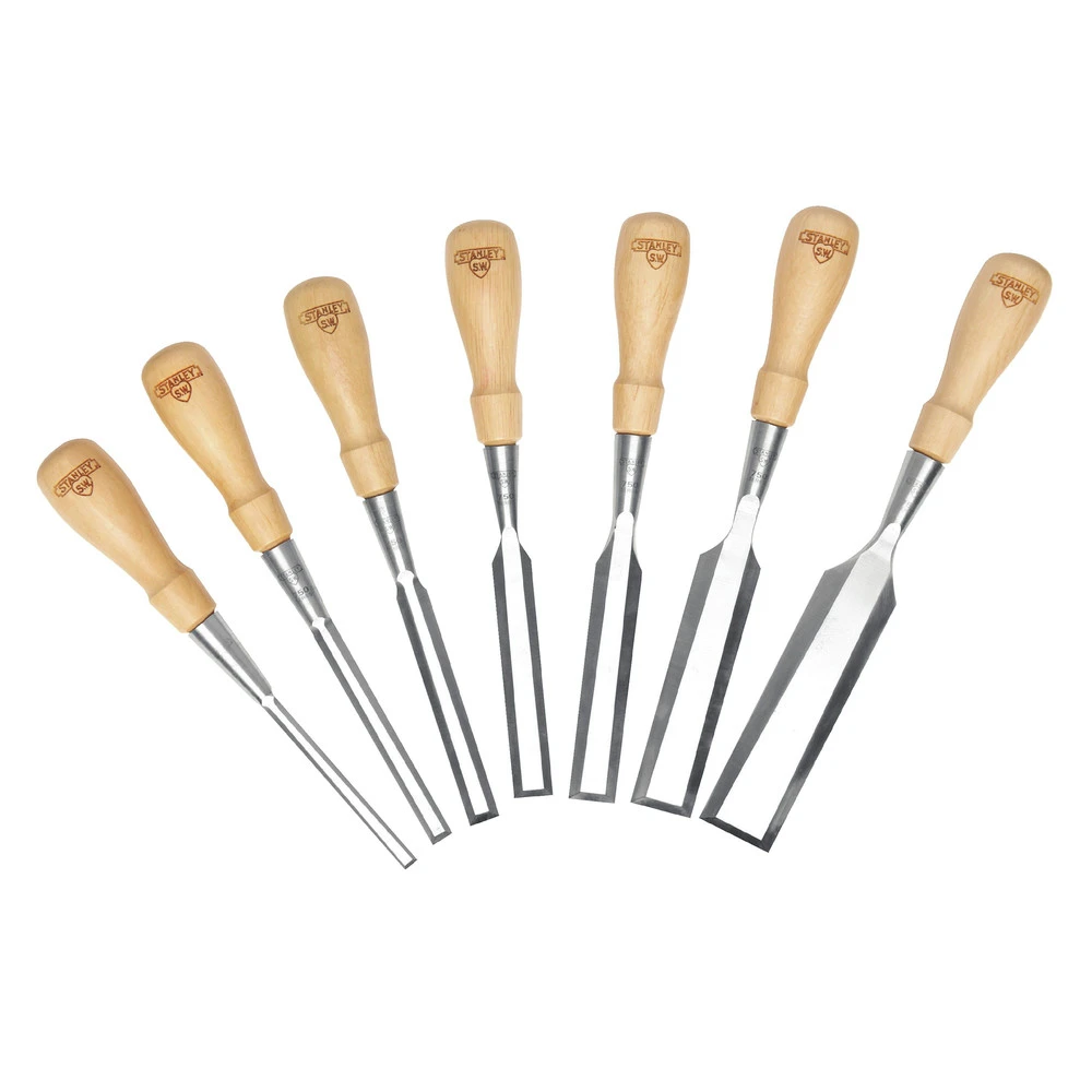 The Stanley sweetheart chisels are crafted at the highest level. Their hornbeam wooden handles provide durability for a long tool life. The long thin blade design ideal for woodworkers. The blade is made of high carbon-chrome steel for edge retention. These 8 chisels include a tool wrap for storage.